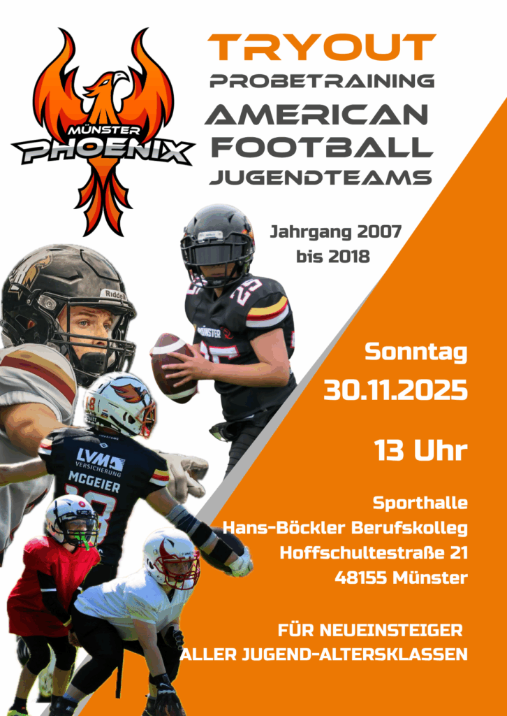 Münster Phoenix ist mehr als nur ein Team. Wir stehen für Wiedervereinigung, Stärke und den unerschütterlichen Glauben an das, was wir gemeinsam erreichen können. Wir tragen eine Vergangenheit voller Einsatz und Leidenschaft für den Football in Münster in unseren Herzen und vergessen nicht, woher wir kommen.
